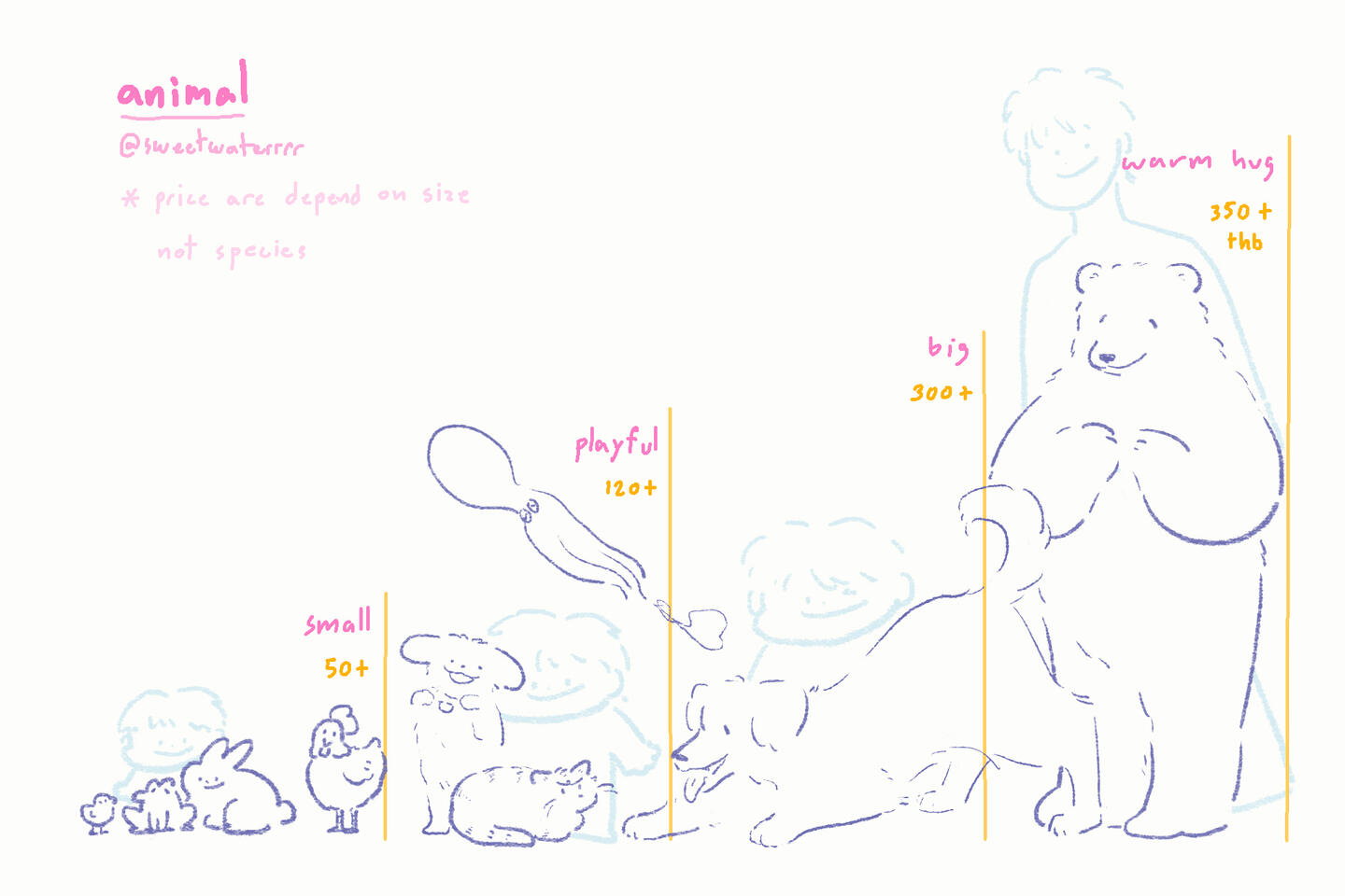 - If you want to commission an animal or object only, the price will start at 150-200 thb and may increase depend on the detailsProps